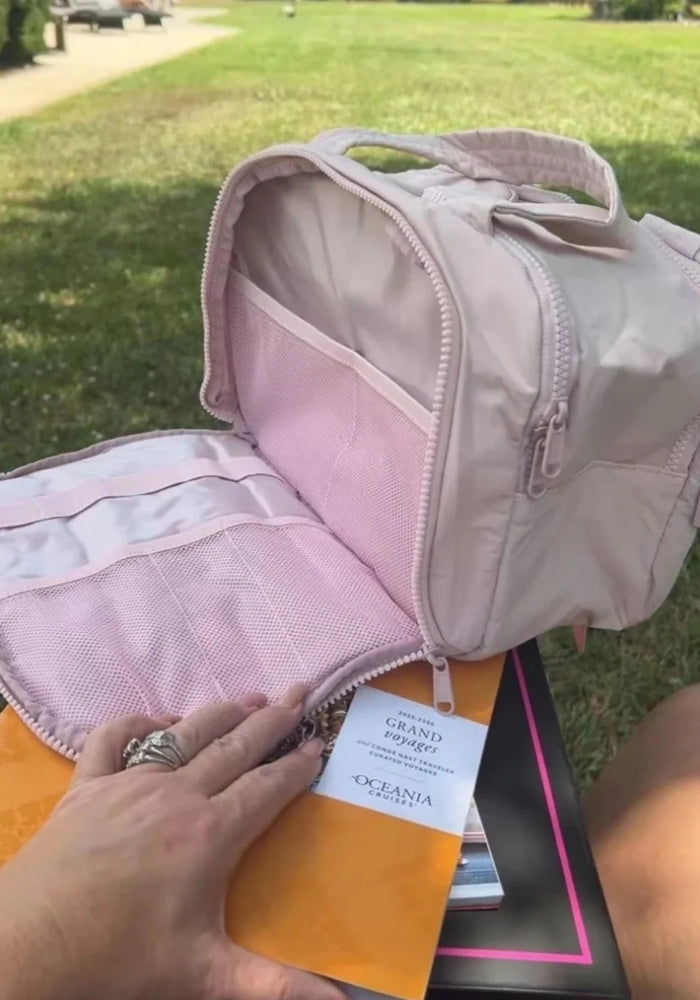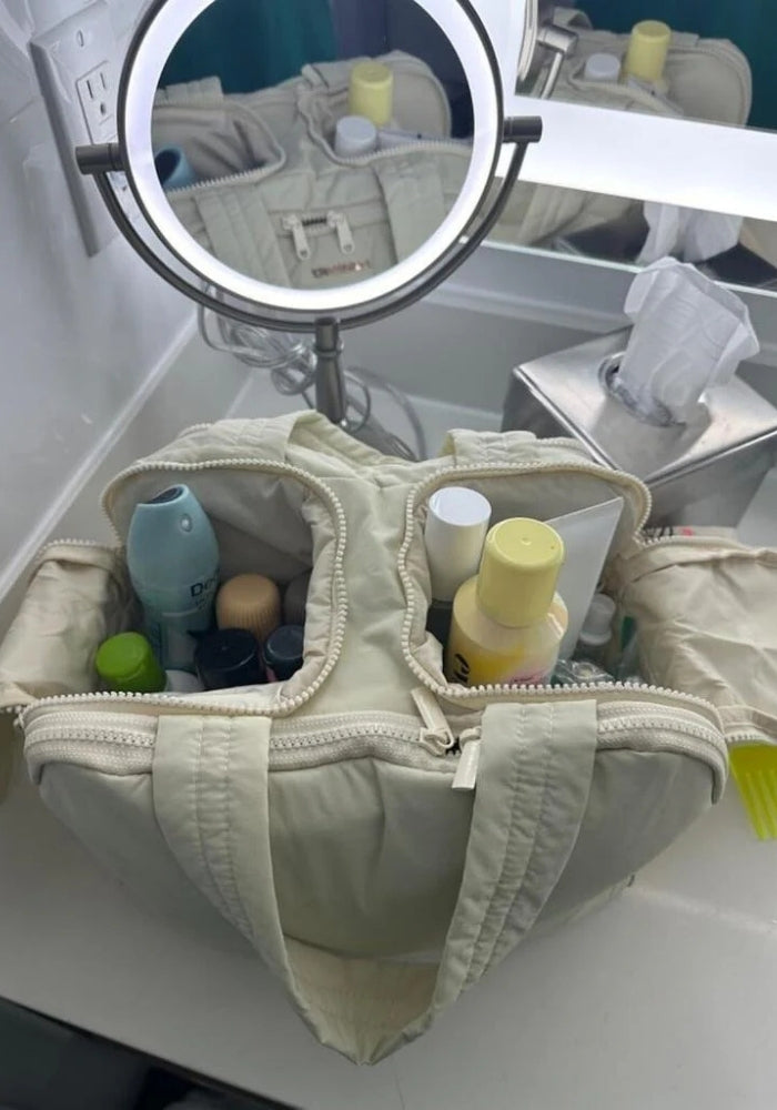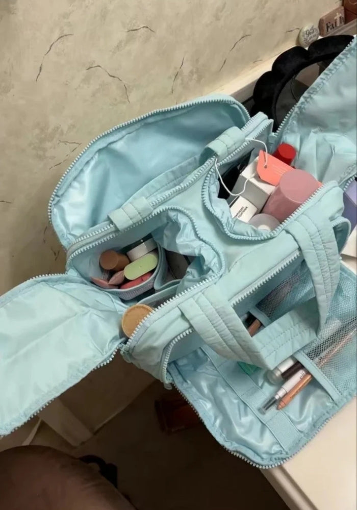 Basta aprire la borsa e ogni cosmetico è subito visibile e facilmente accessibile, rendendo l’organizzazione semplice e veloce.